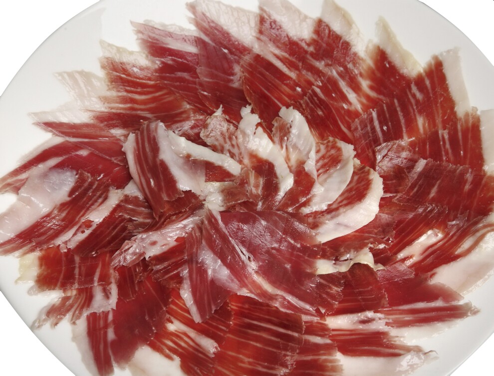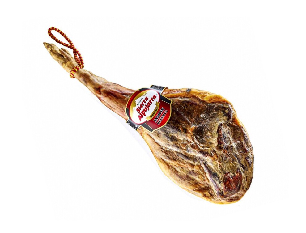Описание: Фабрика по производству хамона Sierra Alpujarra расположена в привилегированной горной местности на юго-востоке Испании. Здесь на протяжении более 100 лет производят высококачественные хамоны Серрано и колбасные изделия. Данная марка хамона Серрано "Reserva Granada" произведена из всемирно известной породы свиней Duroc. Эти хамоны выдерживаются традиционным способом на медленной и естественной основе на протяжении не менее 12 месяцев. Благодаря этому хамон приобретает характерный ярко-красный цвет и нежный, особо интенсивный аромат и вкус. Этот уникальный хамон Серрано содержит пониженное количество соли и правильные пропорции жира. Представлен в виде: цельной ноги хамона на кости с "V" образным вырезом. Упакован в индивидуальный чехол чёрного цвета.