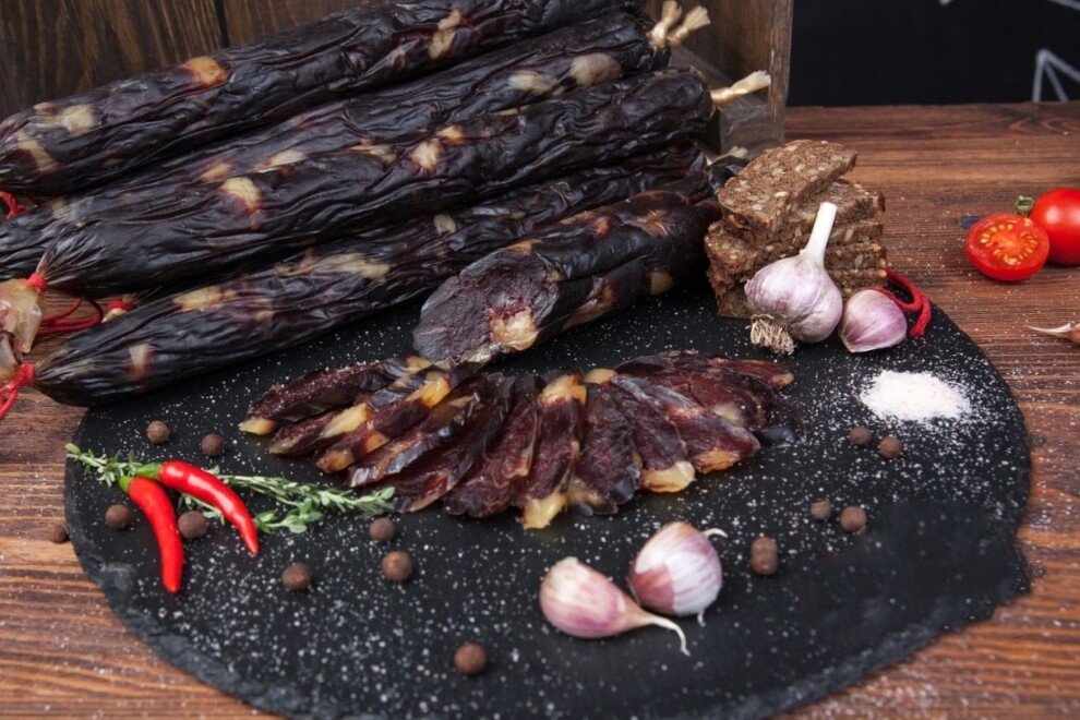 Состав: конина мясо, соль, сахар, чеснок, конский жир