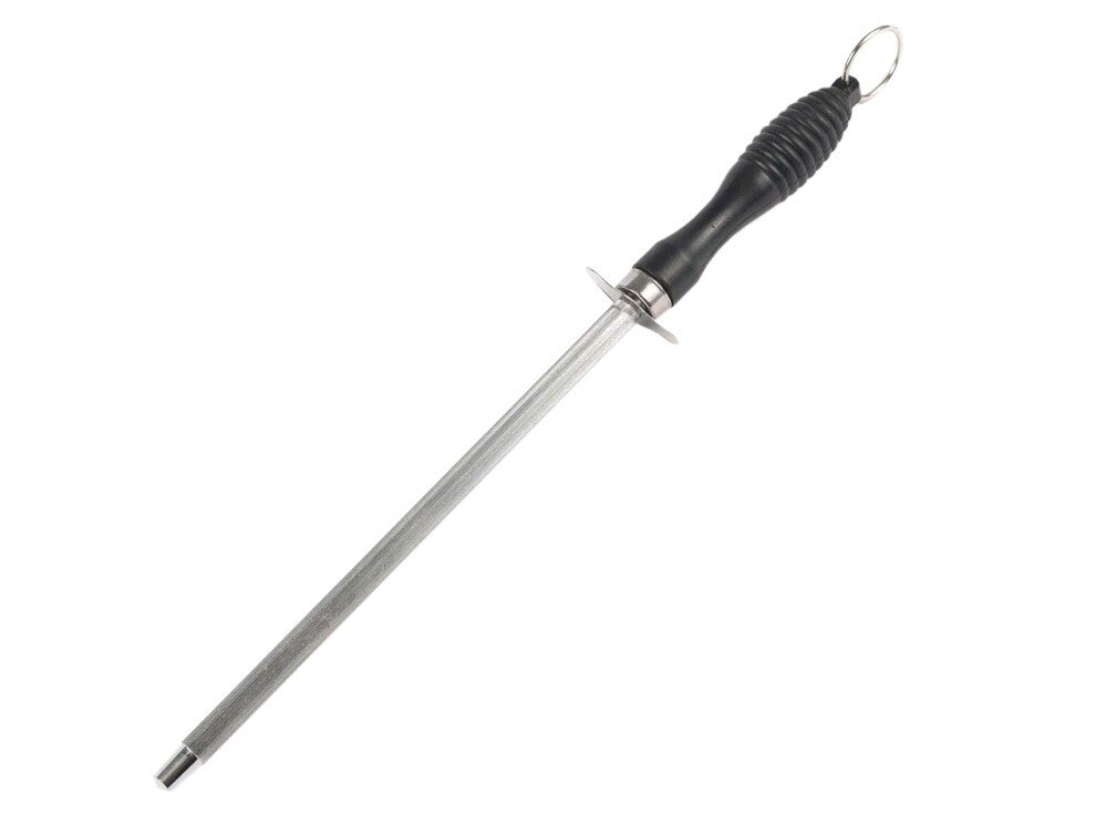 Описание: мусат – специальное приспособление, которое используется для заточки ножей, он используется для поддержания кромки лезвия ножа всегда в остром состоянии. Изделие представляет собой имитацию круглого напильника с ручкой.