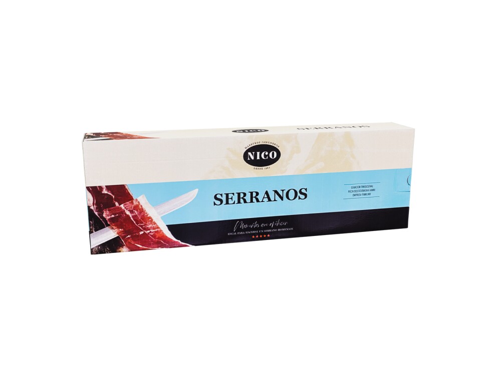 Описание: Окорок на кости Серрано Палета – передние ноги от торговой марки Nico Jamon произведённый в Испании. Его изготавливают из тщательно отобранного мяса чистой породы свиней, полученных путем скрещивания хряков породы крупных белых свиней. Для вяления используются естественные подвалы для сушки. Палета вялится в естественных погребах.
