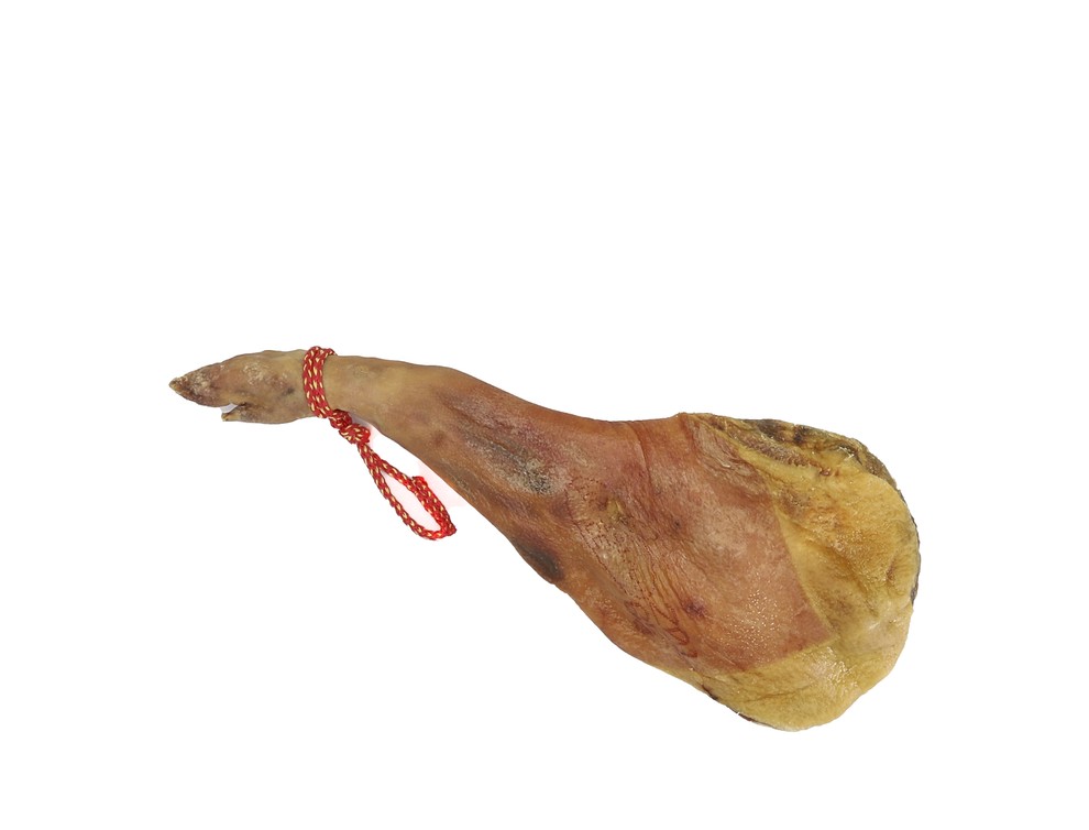 Описание: Продукт для любителей вяленного мяса, сделан из передней ноги белой свиньи. На ферме происходит тщательный процесс откорма свиньи фуражом и растениями. Нужно отметить, что палета всегда жирнее хамона и содержит больше отходов. Хороший бюджетный продукт по соотношению цена/качество. Нога упакована в хлопковый мешок.