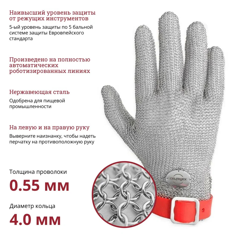Описание: Кольчужная перчатка из профессиональной линейки для разделки мяса и аккуратной нарезки хамона. Перчатки продаются по одной штуке, без упаковки.