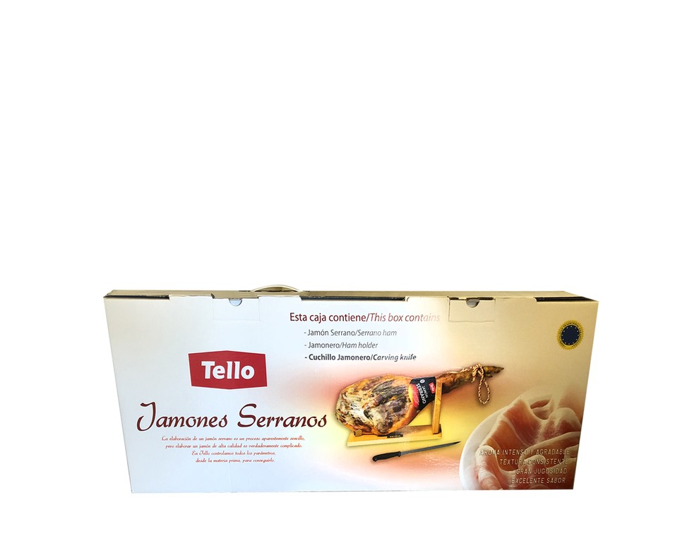 - Нога хамон Серрано от легендарного производителя Tello. Продукт поставляется в защитной упаковке;