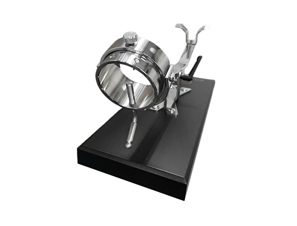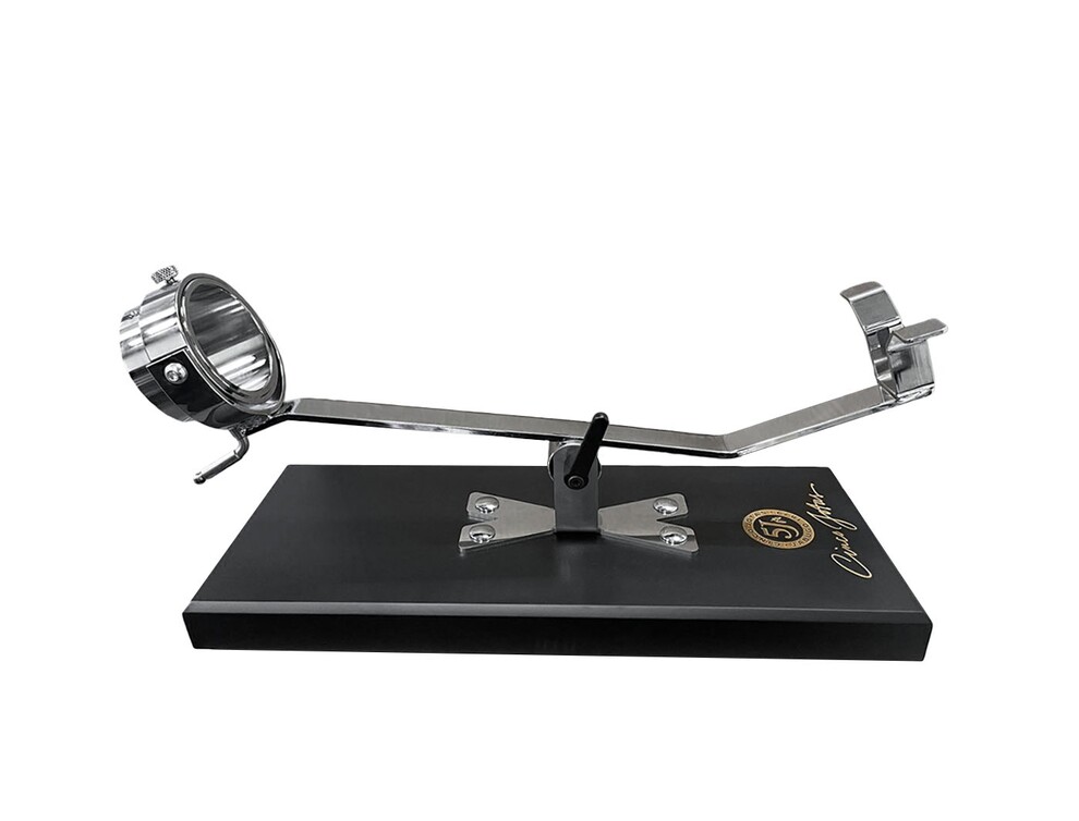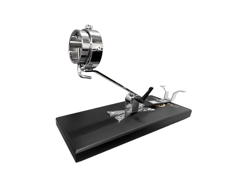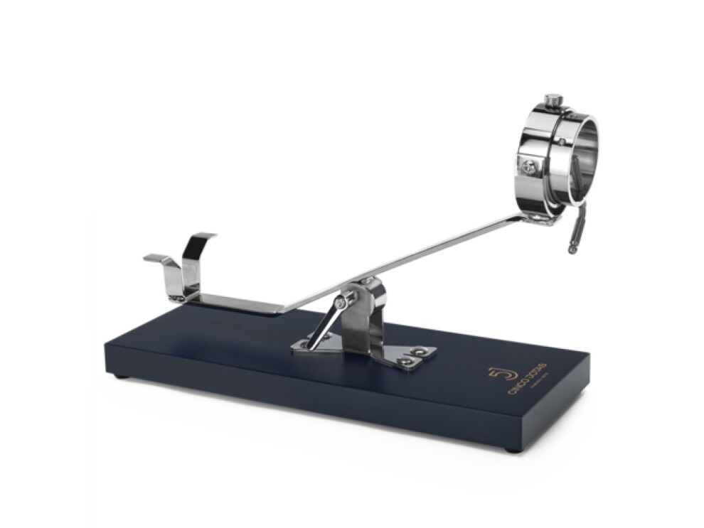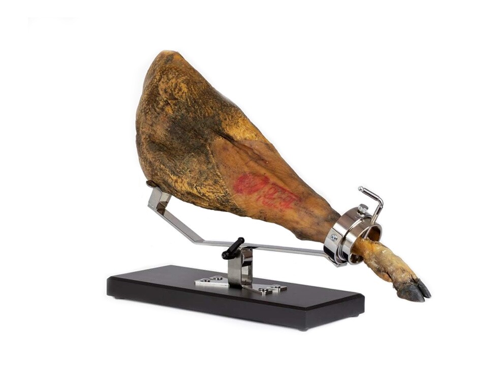 Стильное тёмно-синее метало-керамическое основание этой подставки отображает всю элегантность бренда. Поддерживает несколько положений, позволяет позиционировать ветчину как вертикально, так и горизонтально в соответствии с потребностями нарезки хамона. Невероятный аксессуар всегда держит ветчину в идеальном положении, чтобы обеспечить наиболее оптимальный угол нарезки.